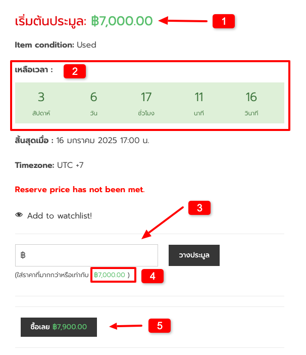 - วันเวลาที่เหลือในการประมูล